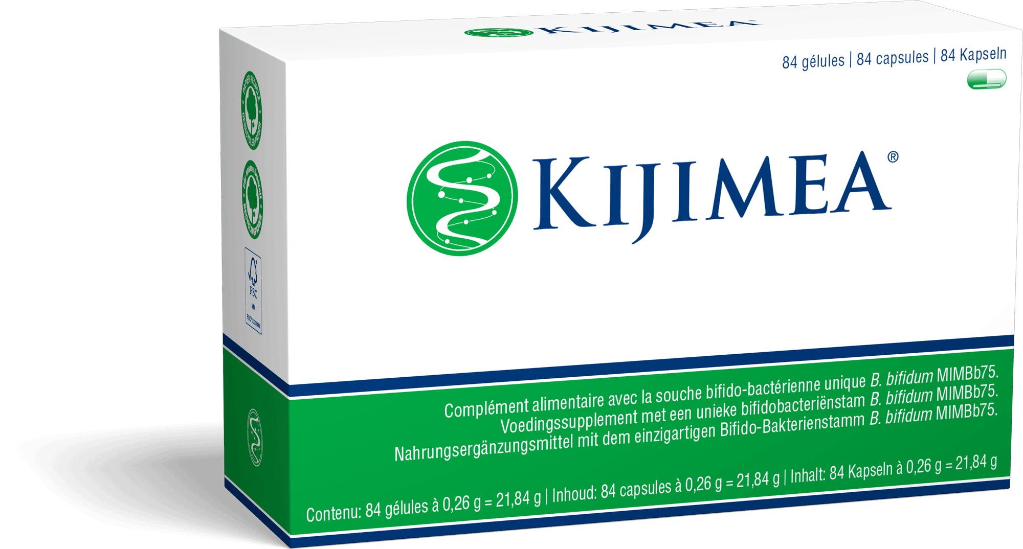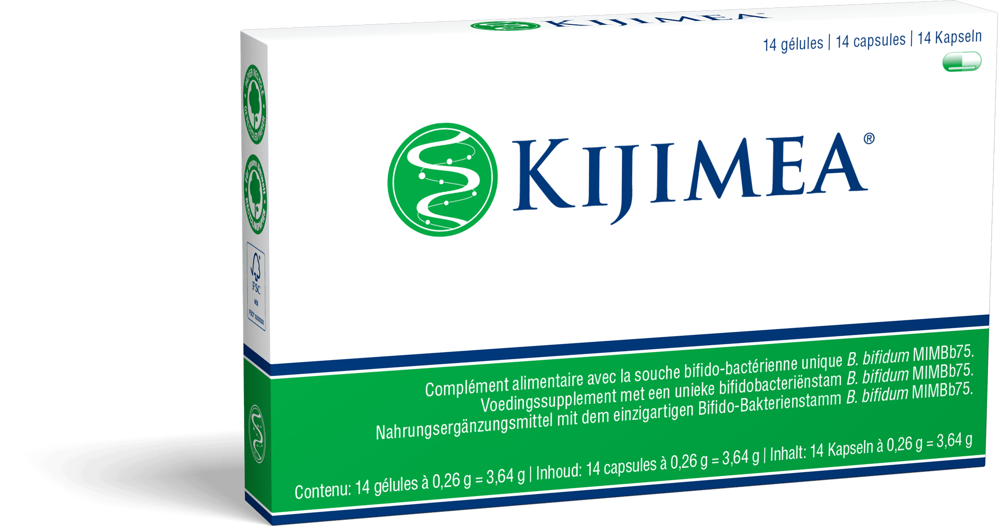 Kijimea® est un complément alimentaire contenant la souche bifido-bactérienne unique B. bifidum MIMBb75. Une gélule contient 500 millions de microcultures viables.